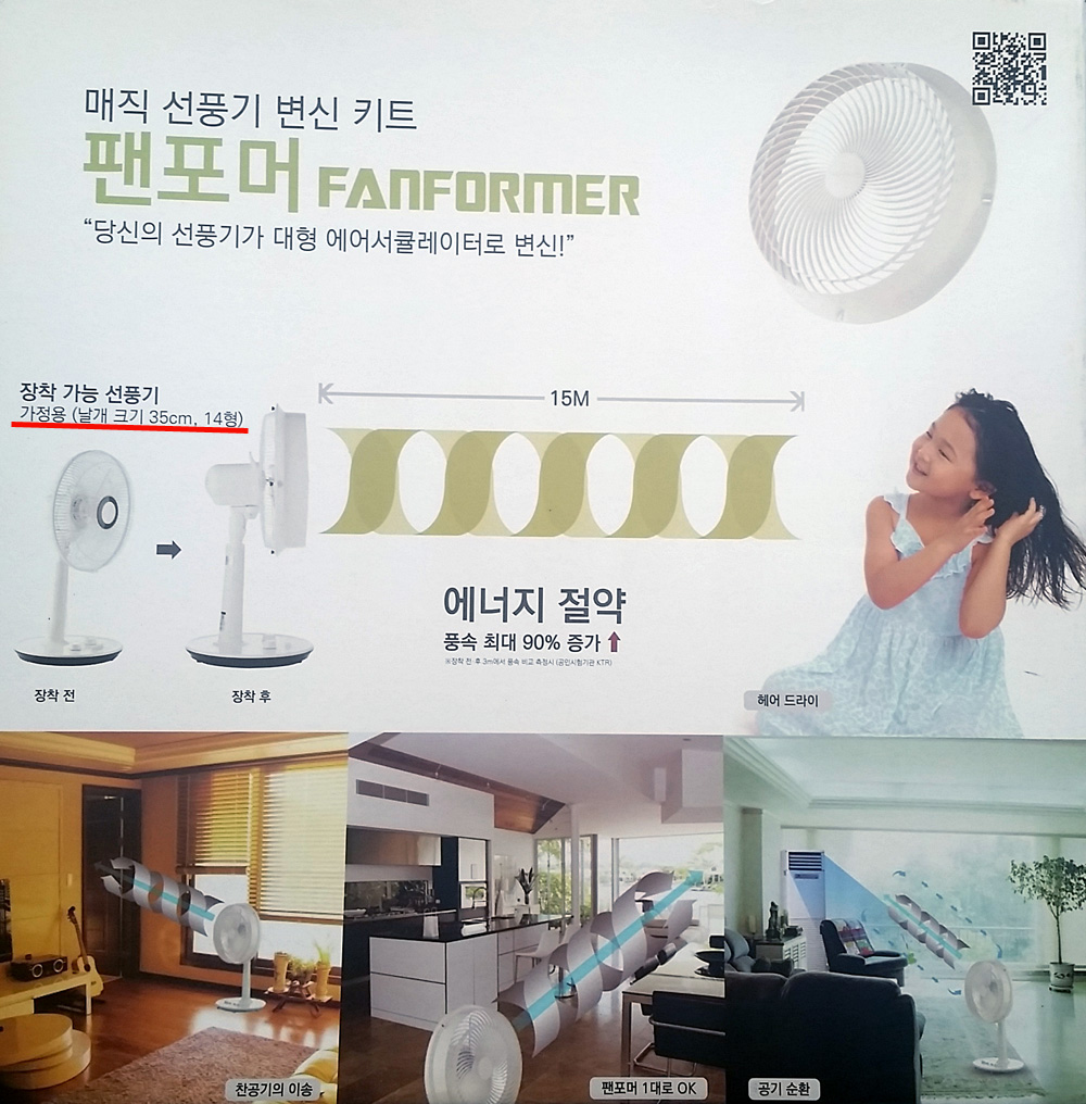 일반선풍기에 팬포머를 덧씌우면 바람이 2배로 강해집니다.
