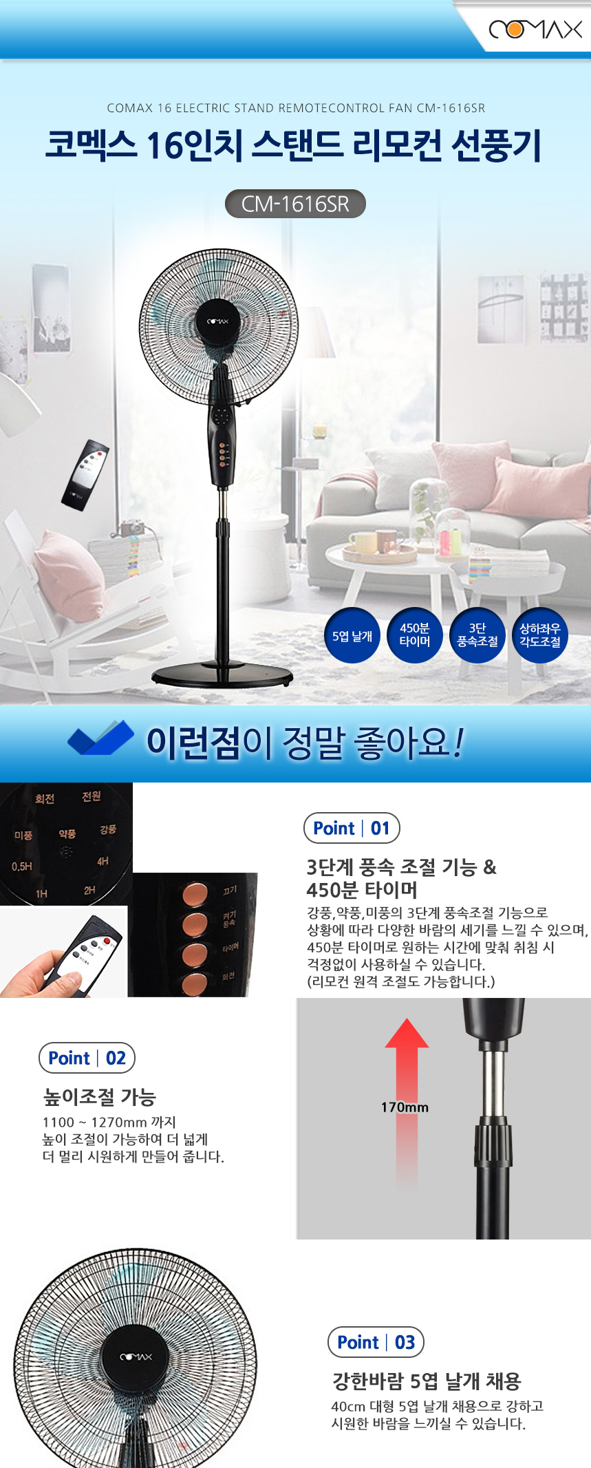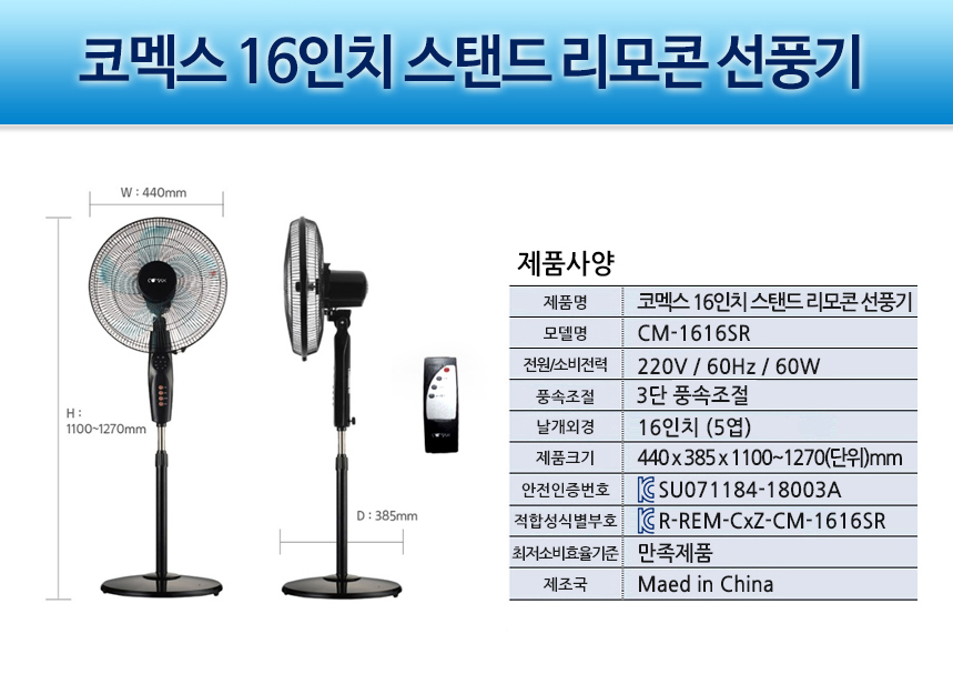 스탠드 선풍기 CM-1616SR > 디지털/가전/핸드폰