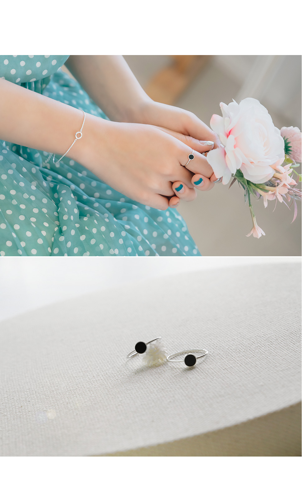 모델처럼 상큼한 봄, 여름 스타일링에 포인트로 착용해도 좋아요.