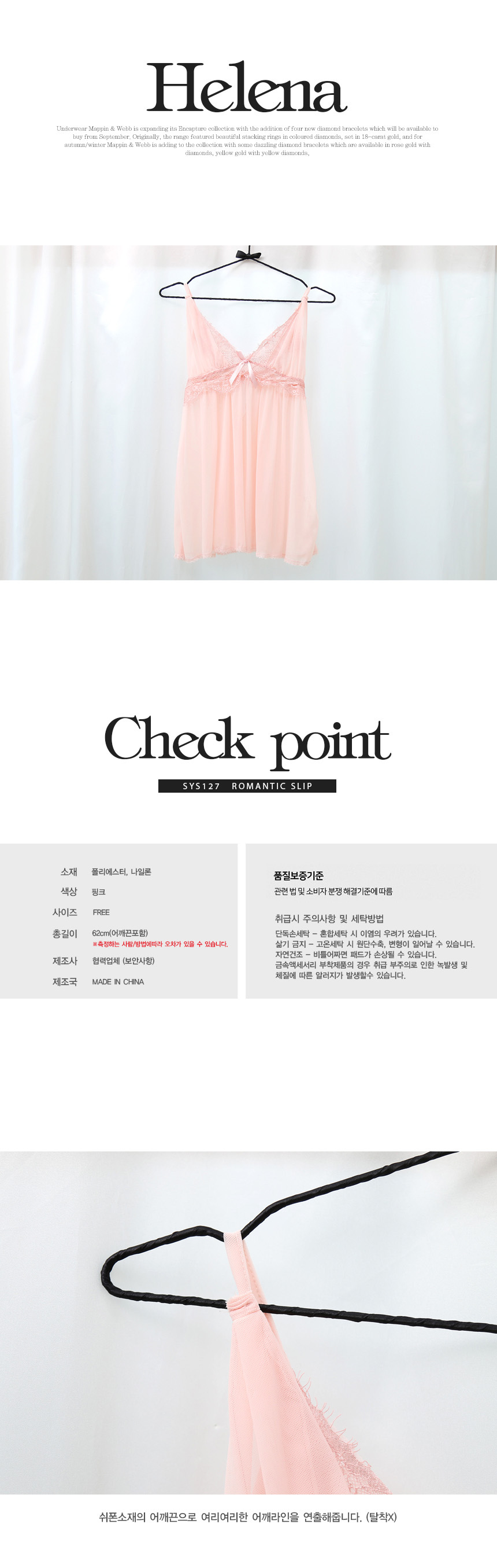 여성의류 | 헬레나 슬립 + T팬티 핑크