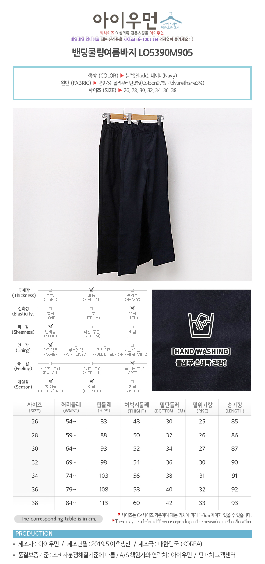 여성의류 | 밴딩쿨링여름바지 LO5390M905 빅사이즈