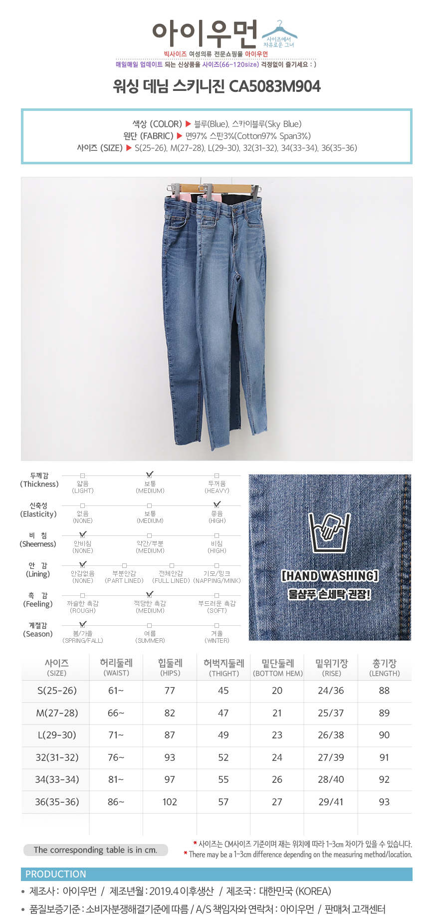 여성의류 | 워싱 데님 스키니진 CA5083M904 빅사이즈