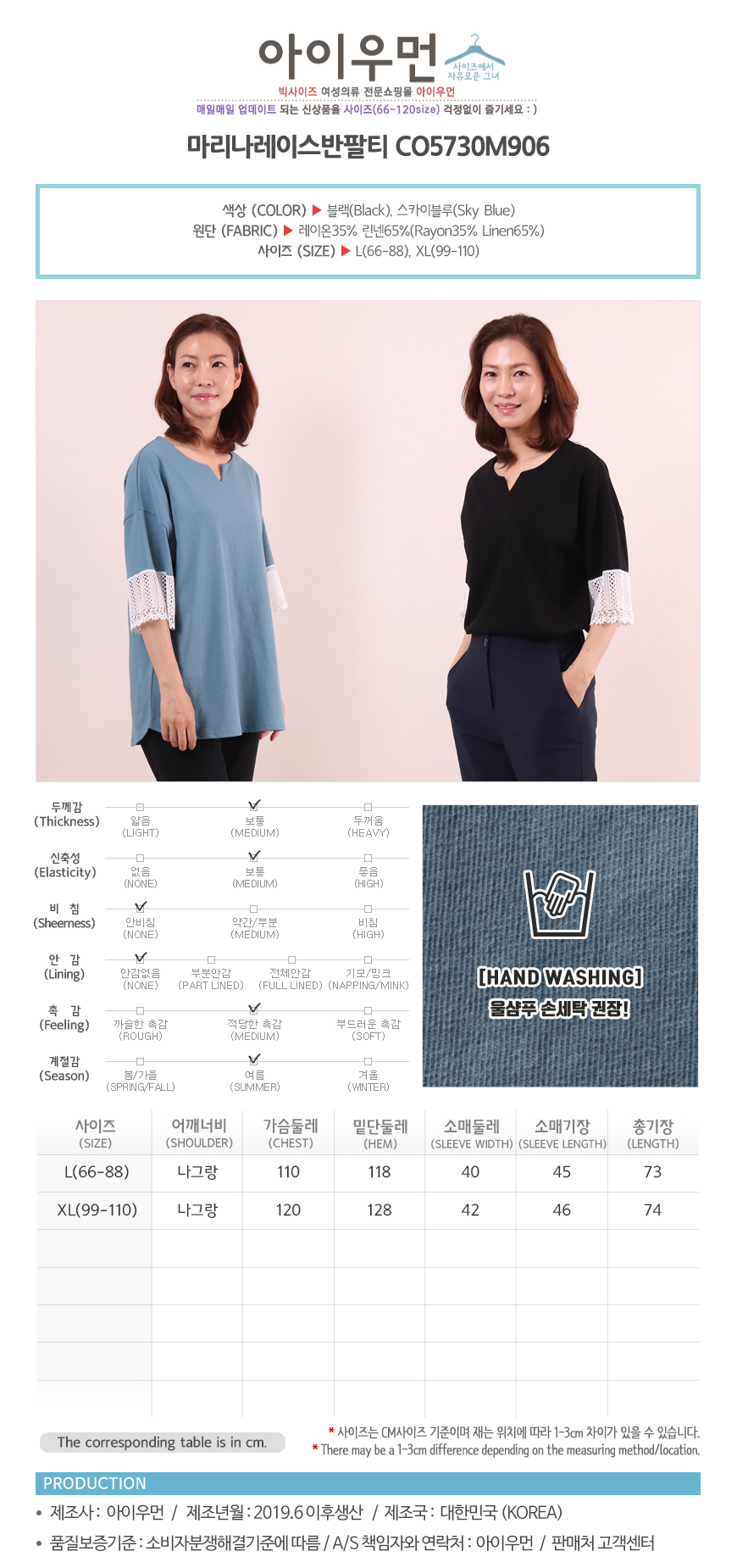 여성의류 | 마리나레이스반팔티 CO5730M906 빅사이즈