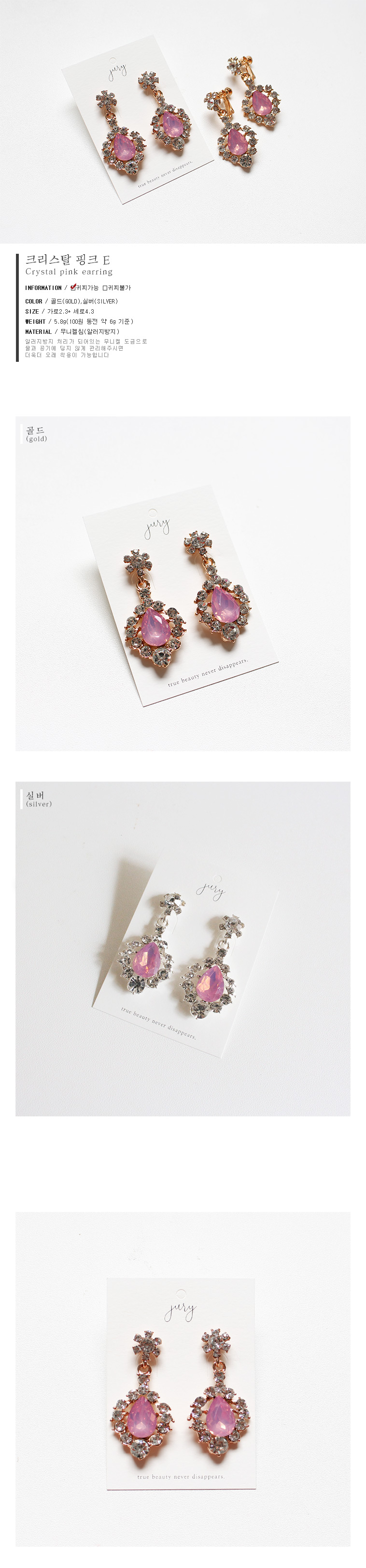 쥬얼리/시계 | 패션 귀걸이 귀찌 여자친구 생일 선물 크리스탈 핑크