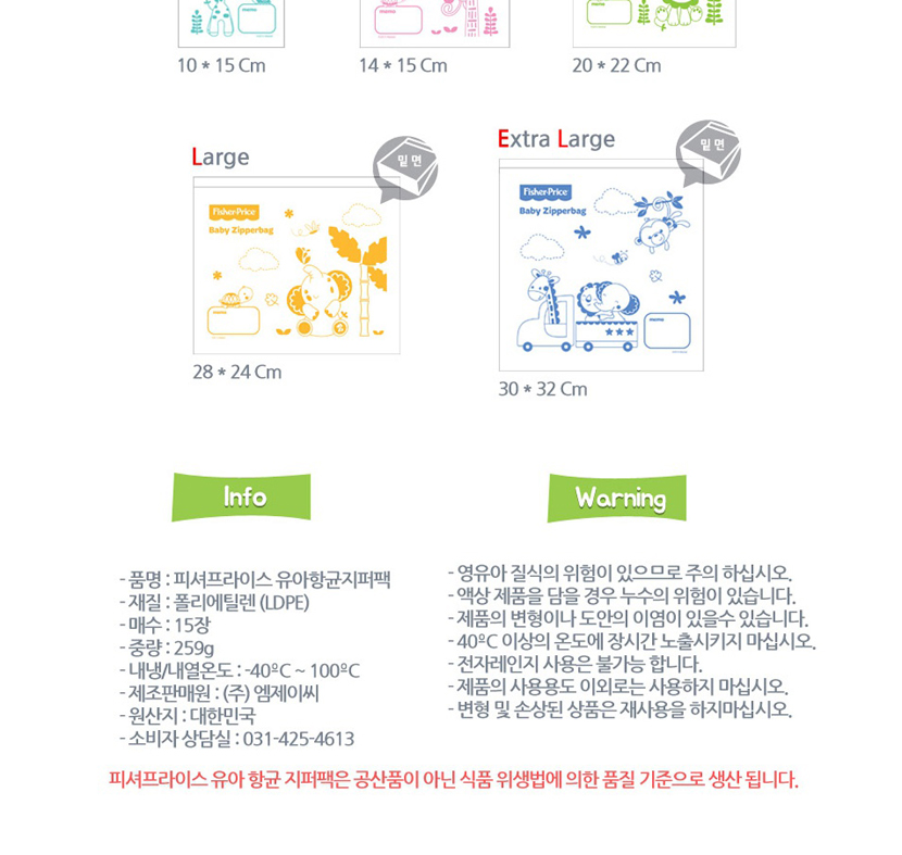 피셔프라이스 유아 위생 지퍼팩 Extra Large 출산용품 > 식품/출산/유아