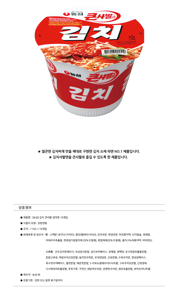 식품/농수축산물 | 농심)김치큰사발(16개입)