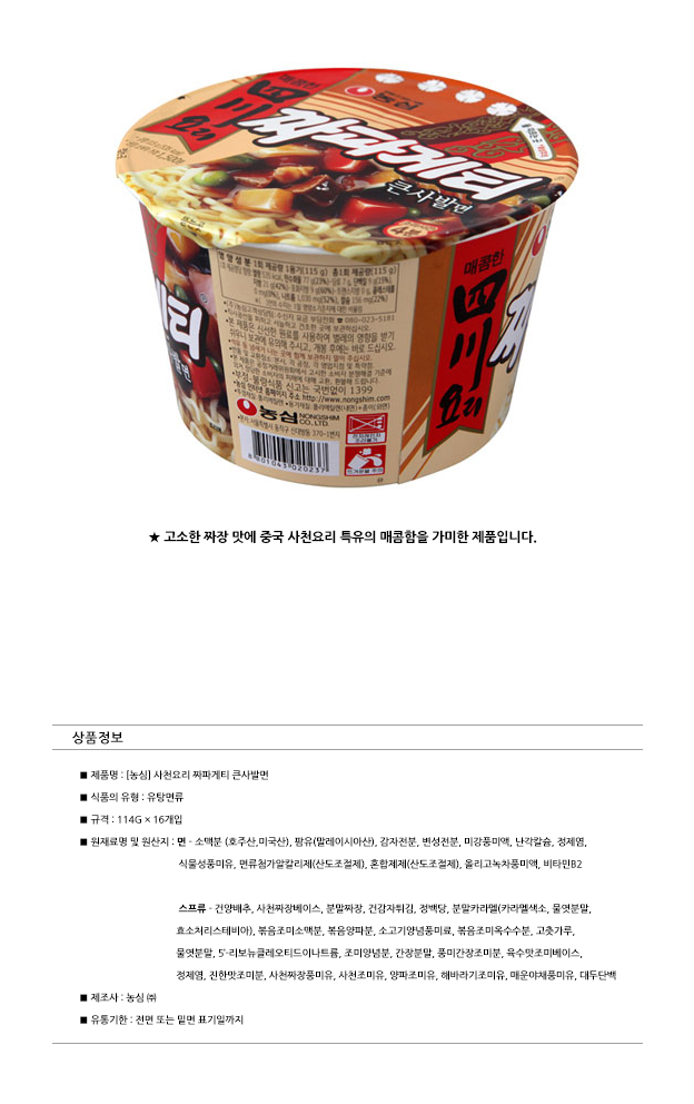 식품/농수축산물 | 농심)사천요리짜파게티큰사발(16입)