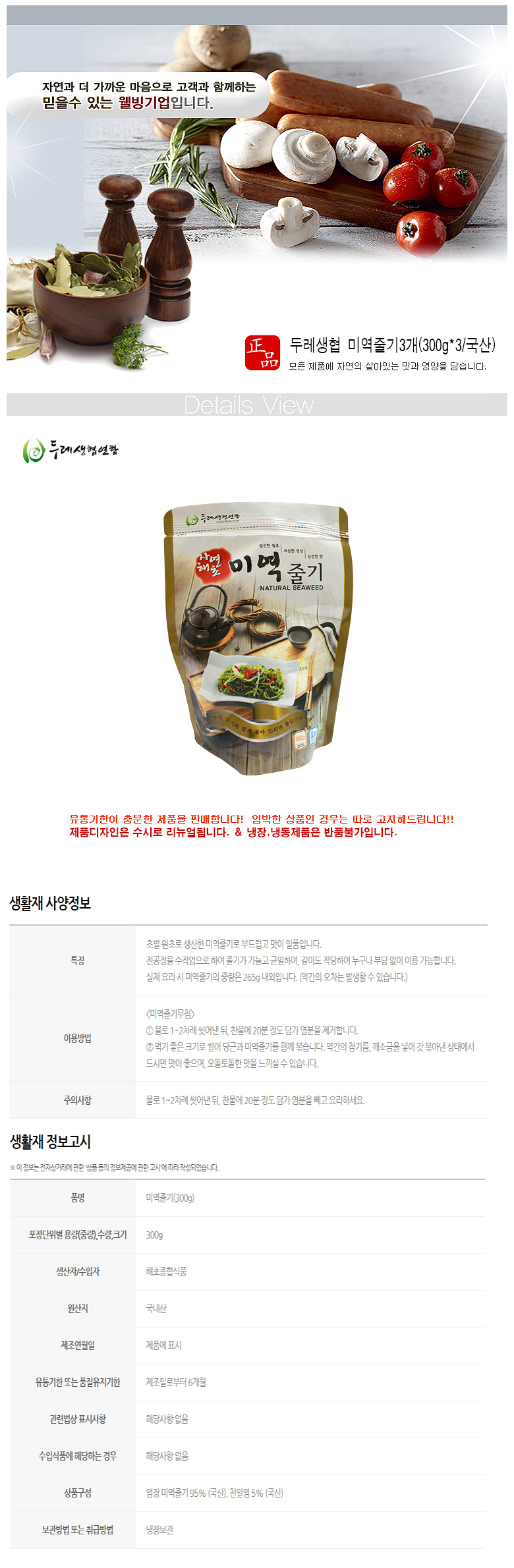 두레생협 미역줄기3개(300gx3/국산) > 식품/출산/유아