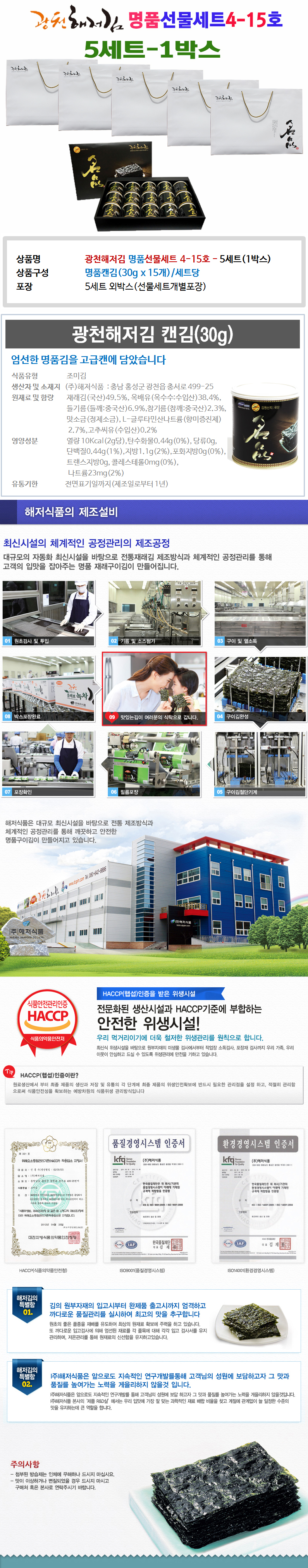 광천해저김 名品선물세트 4-15호 (5세트-1박스) > 식품/출산/유아