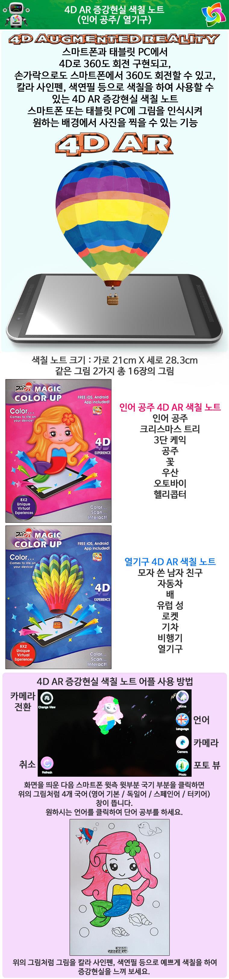 (3개묶음)4DAR증강현실색칠노트 인어공주 열기구 > 식품/출산/유아