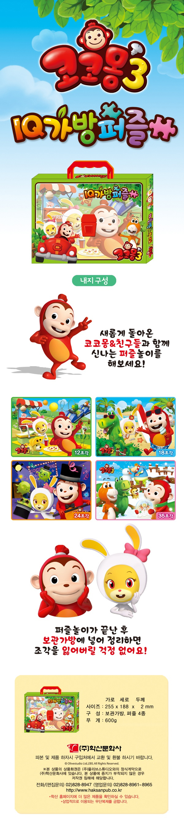 코코몽3 IQ 가방퍼즐 퍼즐놀이 학습퍼즐놀이 지능개발 두뇌촉각발달 유아퍼즐선물 > 식품/출산/유아