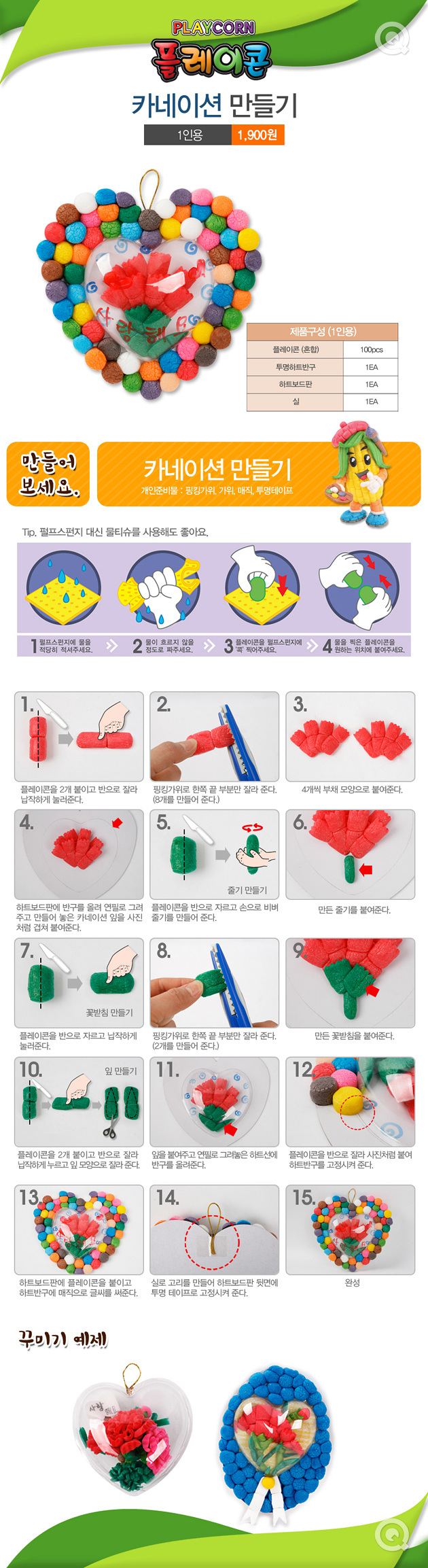 플레이콘 카네이션만들기(1인용) 10매 > 식품/출산/유아