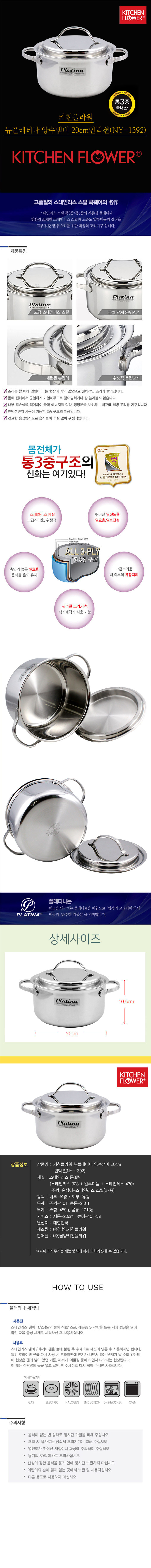 키친플라워 뉴플래티나 양수냄비 20cm 인덕션 > 생활/건강/리빙