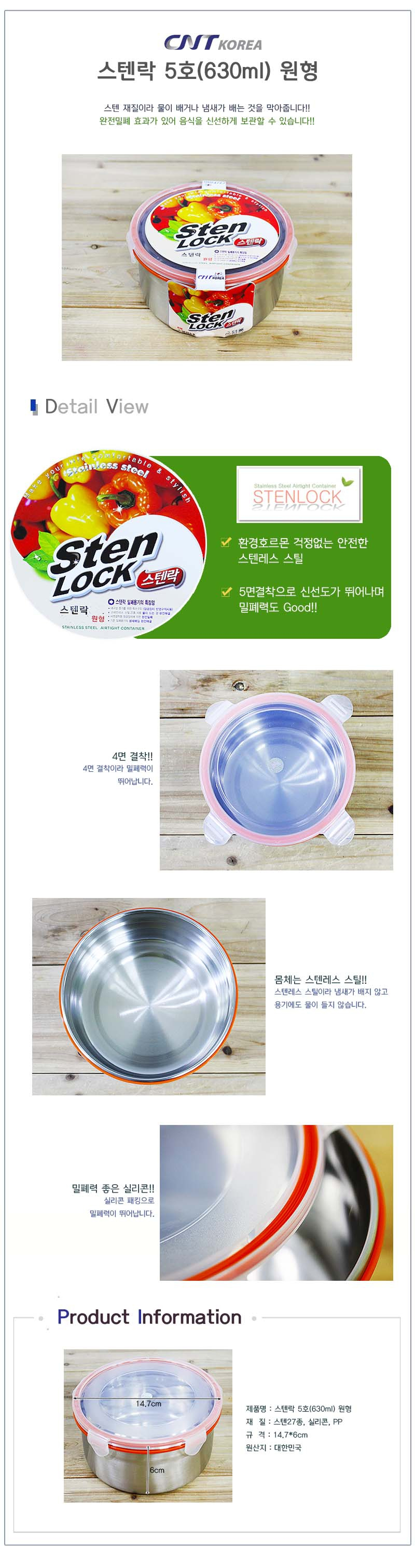 스텐락 원형 스텐 5호 630ml 1p 스텐밀폐용기 스텐락반찬통 스텐보관함 스텐락보관함 이쁜스텐락 > 생활/건강/리빙