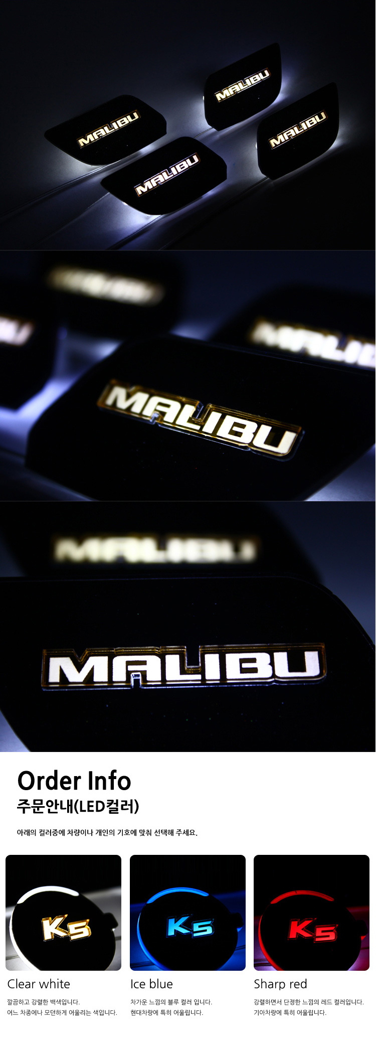 LED색상 아이스블루/화이트/레드 세가지 색상중 택1 가능합니다