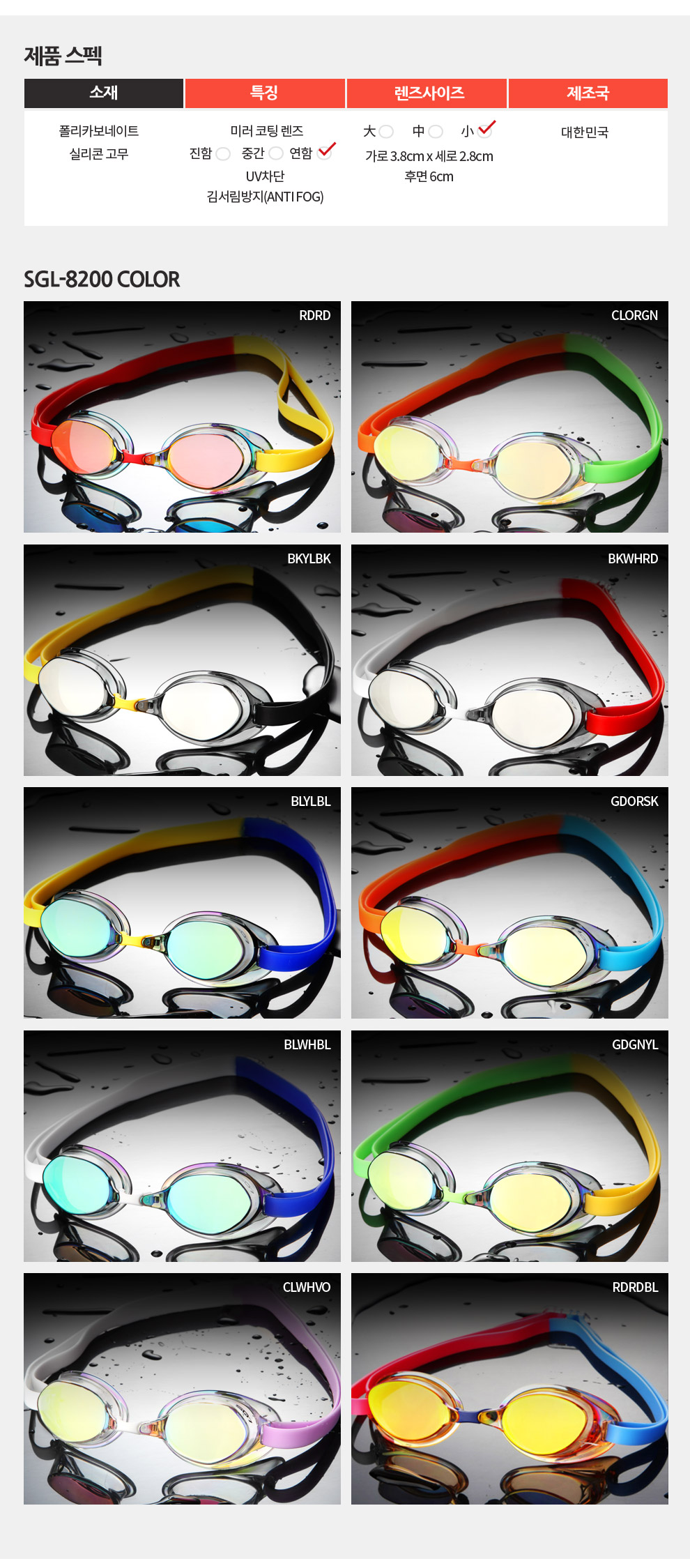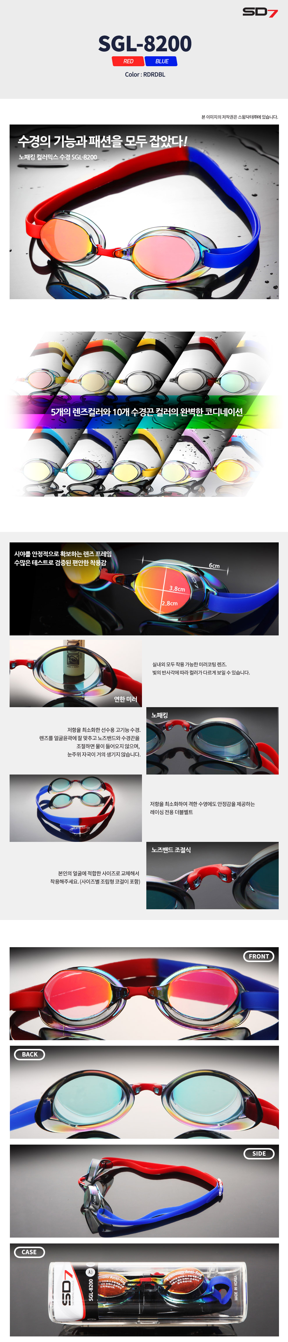 스포츠/레저 | SGL-8200-RDRDBLSD7 선수용 노패킹 컬러믹스 수경