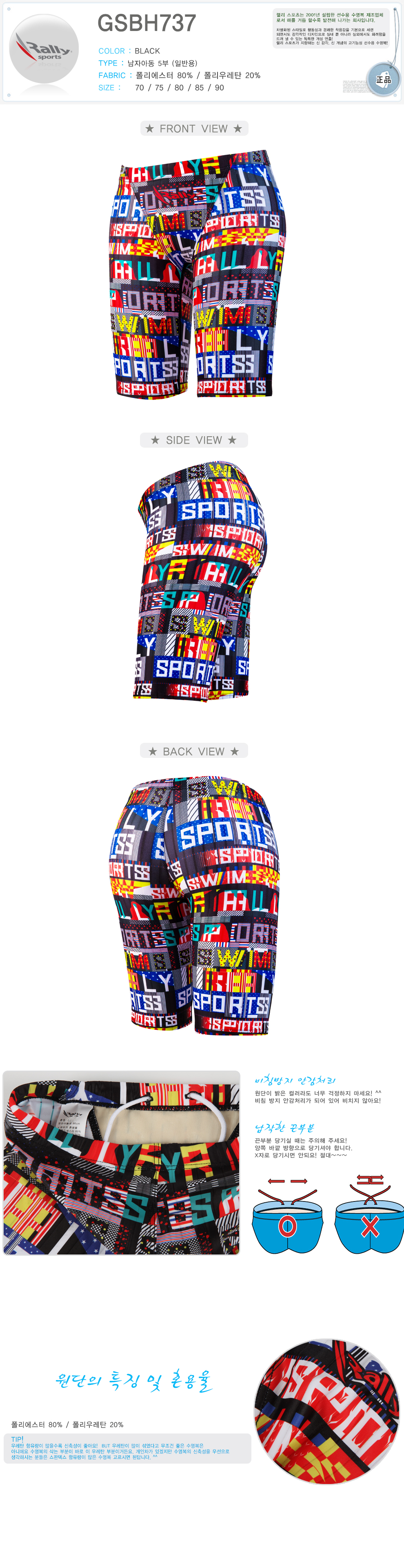 스포츠/레저 | SDM GSBH737-BLK 랠리 남자아동5부 수영용품