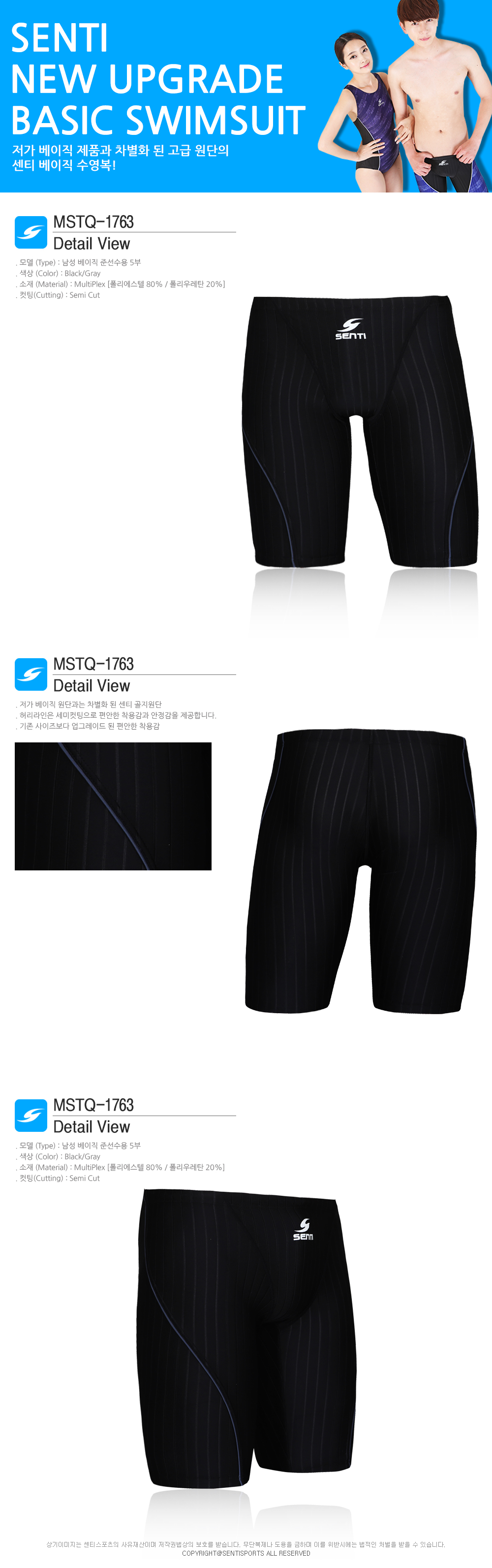 스포츠/레저 | SDM MSTQ-1763 블랙-그레이 센티 남성 준선수용 5부